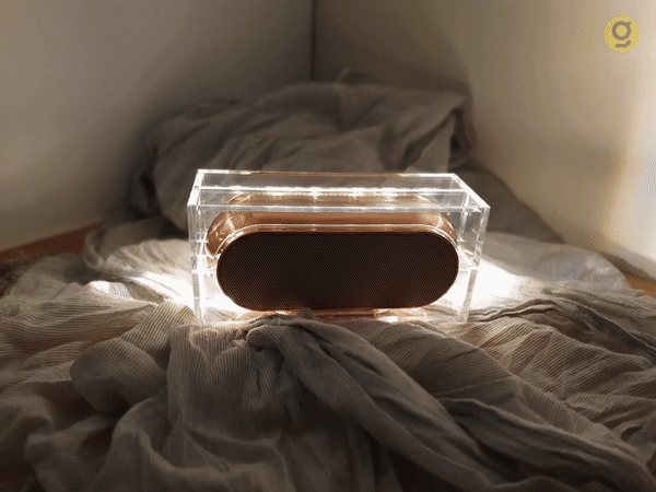 片手で持てるこの小ぶりなスピーカーなら、上質な音楽空間をどこでも簡単に作り出します。
