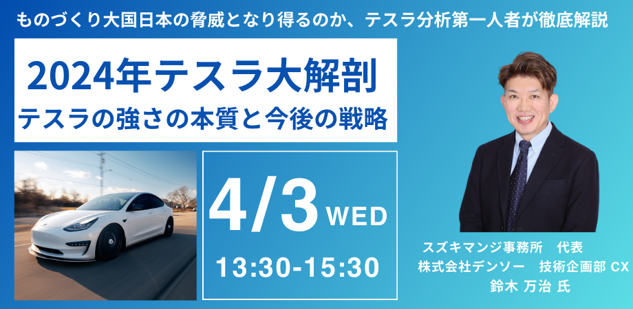 【JPIセミナー】「2024年テスラ大解剖~テスラの強さの本質と今後の戦略~」4月3日(水)開催