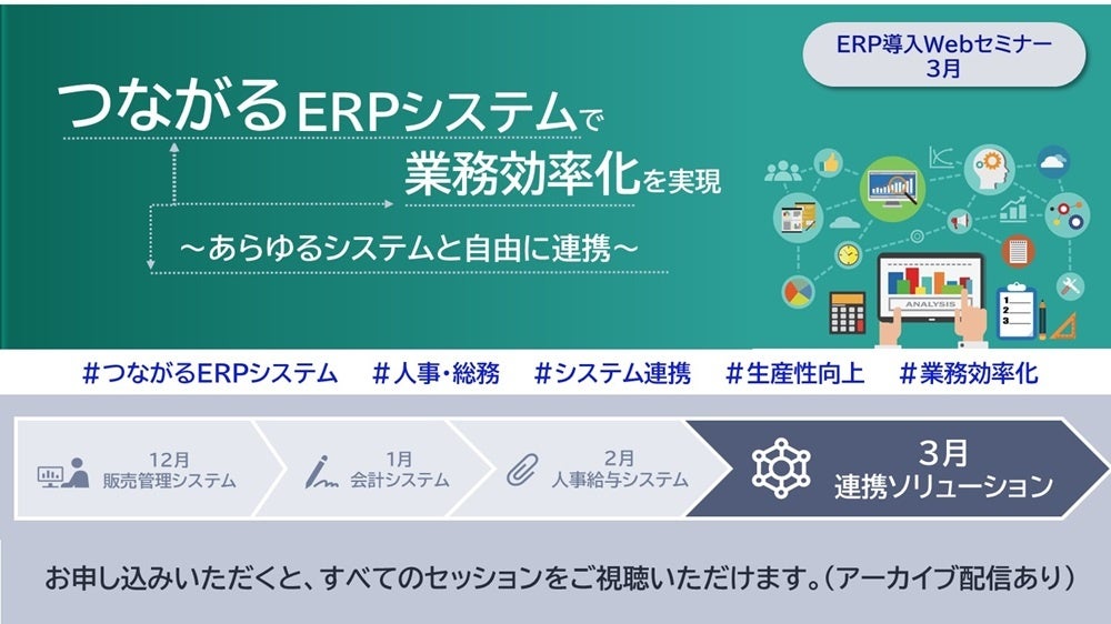 3月は、「あらゆるシステムと自由に連携するERP」をテーマに、導入効果に迫ります!