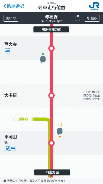 ・赤穂線では、対象時間帯を経過後、順次掲載していたものから、リアルタイムで最大の遅延時分を掲載します。(5分以上の遅延が発生した場合)