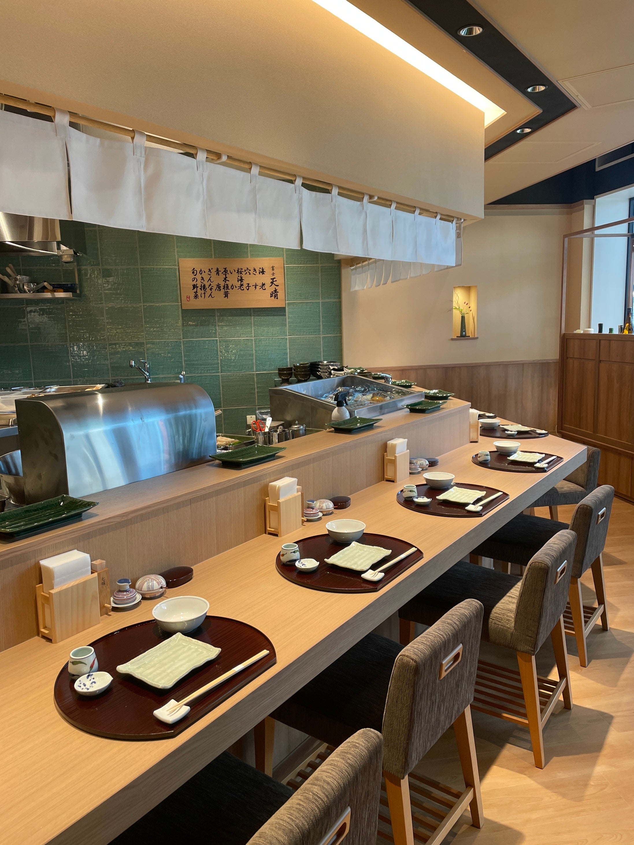 ●天ぷらの主役となる食材は駿河湾の豊かな海の幸や箱根連山の西麓、標高50m以上の温暖湿潤な高原で育つ「箱根西麓三島野菜」など、自然の甘みや旨みが際立つ旬の食材を厳選。綿実油と太白胡麻油を合わせ、衣には国産小麦を使用し、素材本来の味わいを最大限に引き出す軽やかな衣とともに提供いたします。