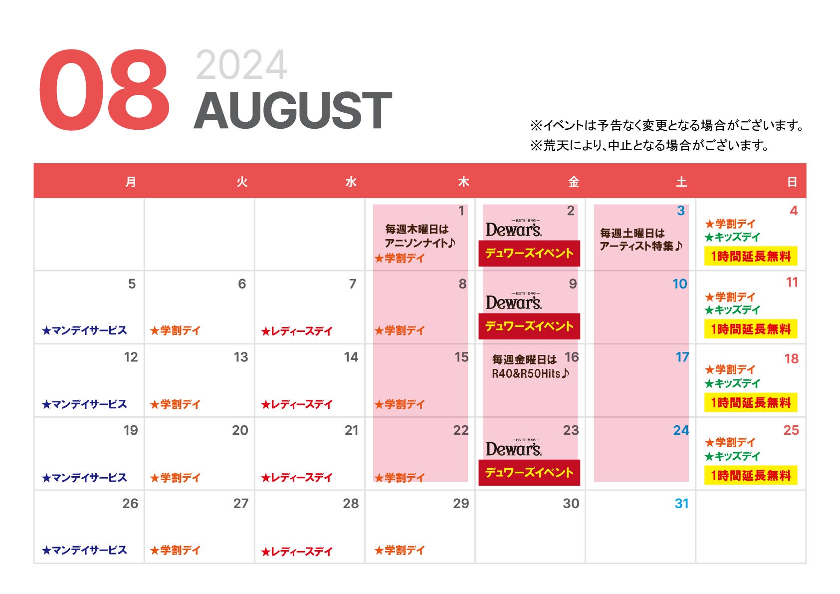 《曜日限定イベント》