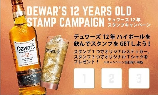 スタンプ3個…デュワーズオリジナルTシャツをプレゼント。