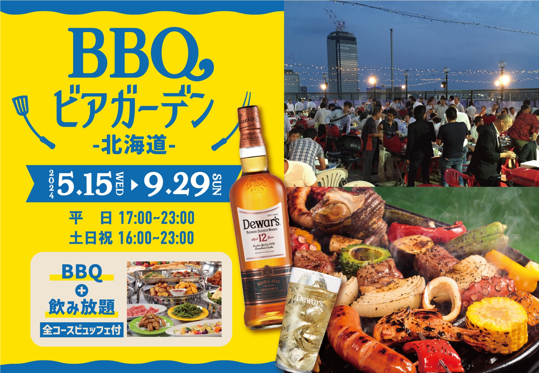 【北海道を満喫できる屋上ビアガーデン】BBQビアガーデン北海道にて、8月特別イベント『デュワーズ特設ブース』や『学割』が登場