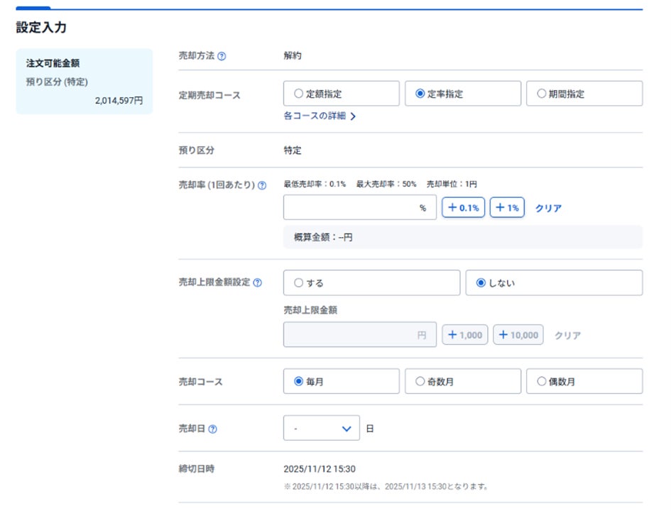 ■「定期売却サービス」の設定画面イメージ