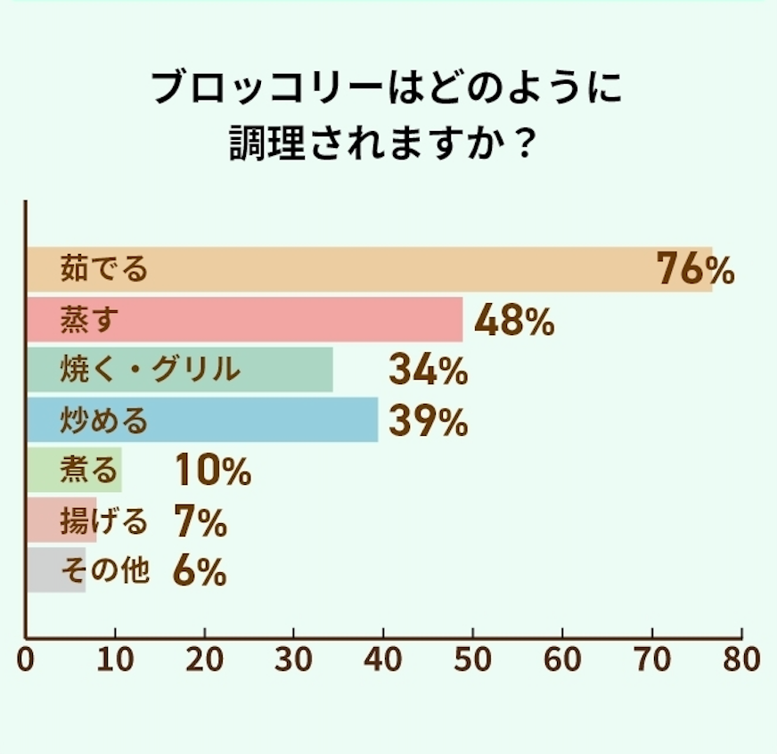 ブロッコリーの食べ方について、シンプルな「茹でる」という方法が一番多く、次に多かったのが