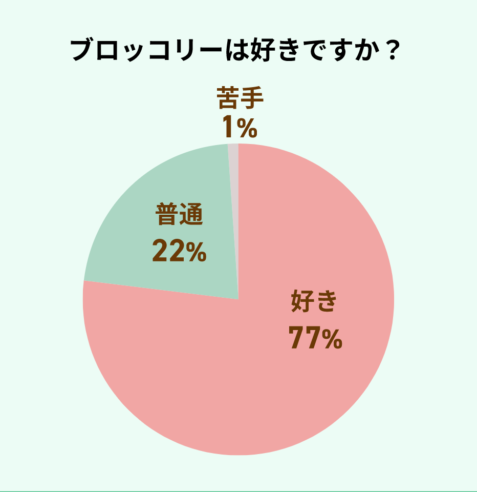 ●ブロッコリーが苦手な人はわずか「1%」という結果!22%がふつう、77%が好きと回答