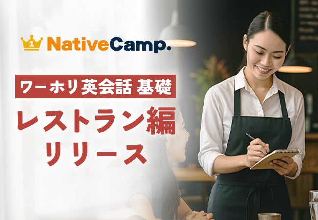 ネイティブスピーカーと回数無制限のオンライン英会話サービス「ネイティブキャンプ英会話」を展開する株式会社ネイティブキャンプ(東京都渋谷区 代表取締役:谷川国洋)は、ワーキングホリデー渡航前の英会話学習に役立つ教材「ワーホリ英会話 基礎」において、新たに「レストラン」編をリリースいたしました。