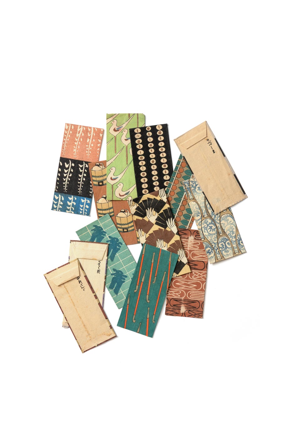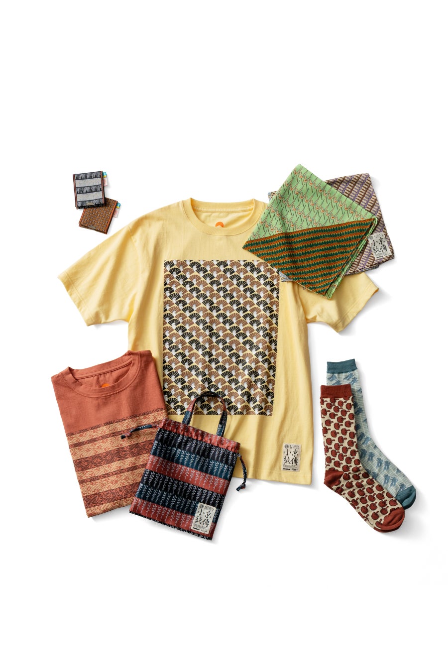 本企画では、デザインユニット『COCHAE』が、収集した小紋柄のポチ袋(明治〜大正時代に木版で制作)を元に、京伝考案の小紋を復元しました。それを〈BEAMS JAPAN〉が日本各地のテキスタイル産地で生地として再現し、本企画では現代のライフスタイルに合わせたグッズとして展開します。