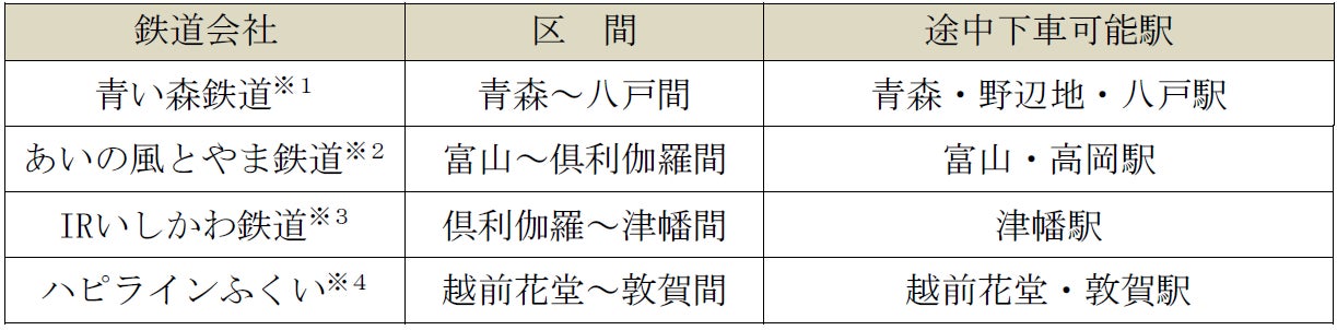 ・以下の鉄道会社線の区間については、特例としてJR線へ通過利用する場合に限りご利用いただけます。