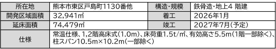 熊本市内においてマルチテナント型物流倉庫「熊本戸島ロジスティクスセンター」着工
