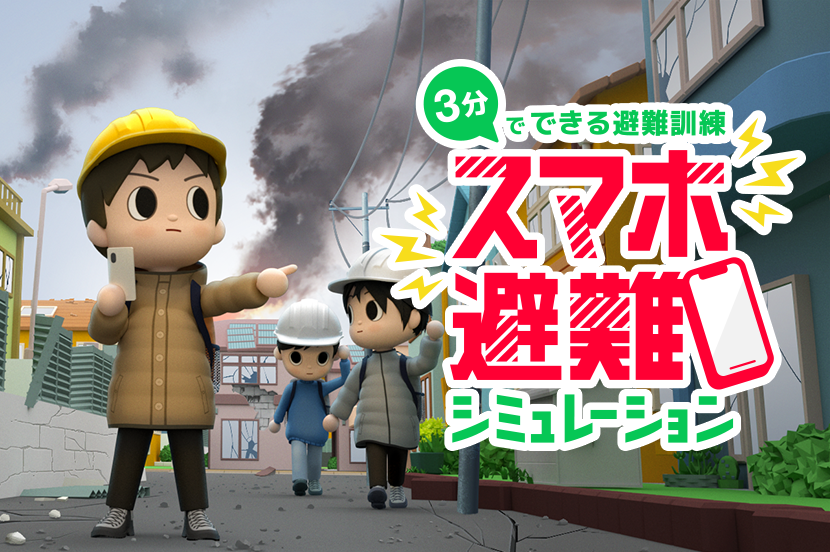 「スマホ避難シミュレーション」で防災行動力を高めよう。あなたは正しい行動を選択できますか? 「スマホ避難シミュレーション」で防災行動力を高めよう。
