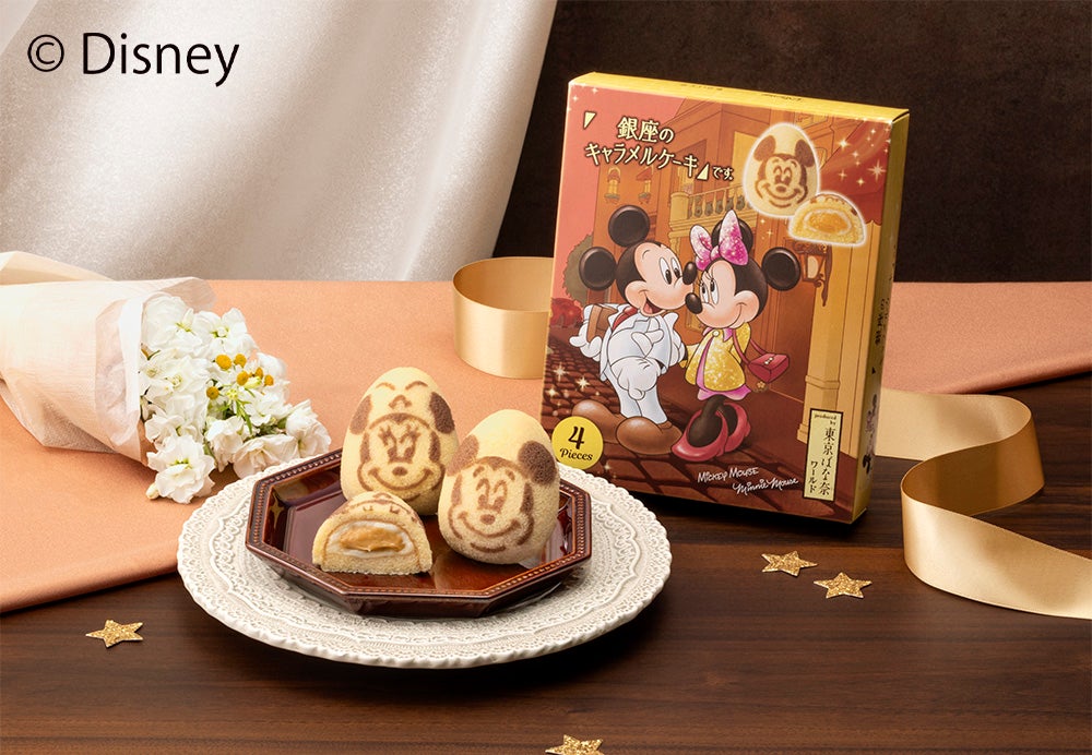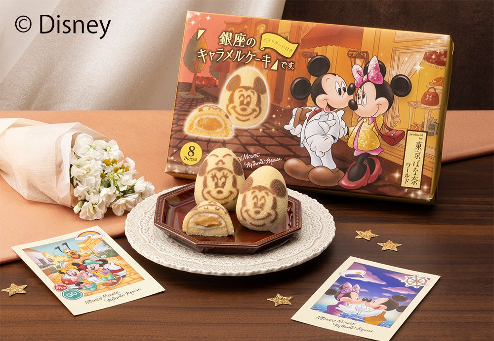 【東京ばな奈】ひとめで笑顔の最新作!永遠の恋人「ミッキーマウス&ミニーマウス」がテーマのふわふわキャラメルケーキ誕生。記念のポストカード付