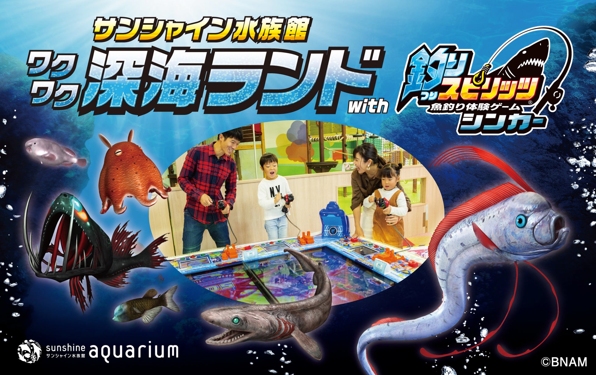 本日より『サンシャイン水族館』特設会場にて、深海生物を「見て」「釣れる」、『釣りスピリッツ シンカー』とのコラボイベントが開催されます。