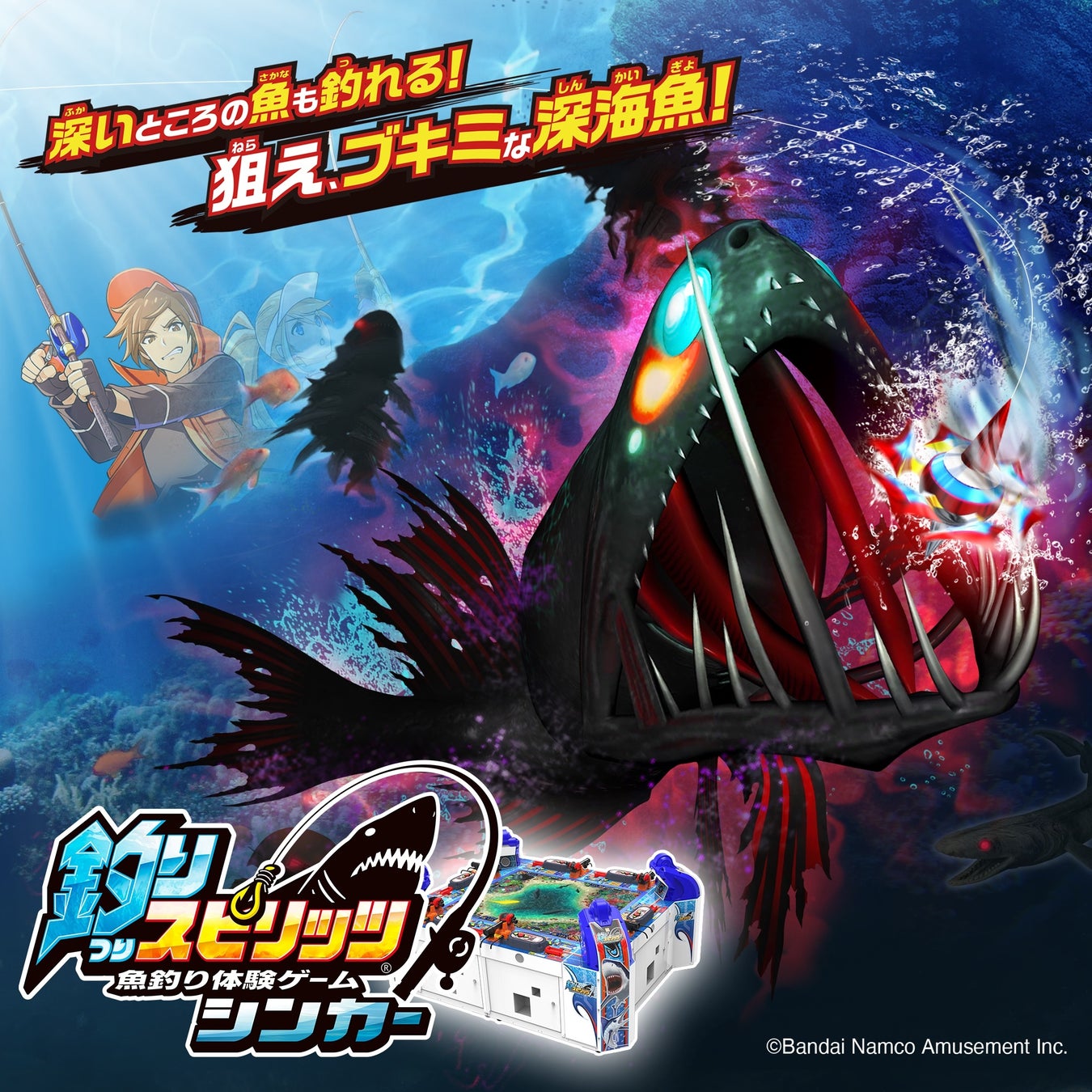 深海魚の一本釣りがゲームセンターで解禁!?魚釣り体験ゲーム最新作『釣りスピリッツ シンカー』稼働開始 連載マンガに水族館でも!この冬は深海魚を釣りまくろう!