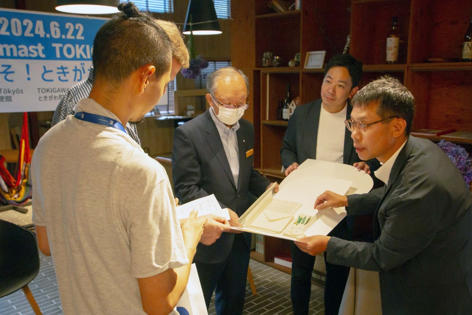 セレモニーでは、記念品としてときがわ町長の渡邉一美氏からエストニア大使へ、地域の名産品である山椒を使った山椒プリンや赤山椒塩、手漉き和紙の葉書などが贈られました。大使からは「とても丁寧なおもてなしに感動している。ぜひ毎年ときがわ町でこのイベントに参加したい」とのコメントをいただきました。今後もコモリバを多様な文化の架け橋の場として、地域活動に貢献していきたいと考えています。