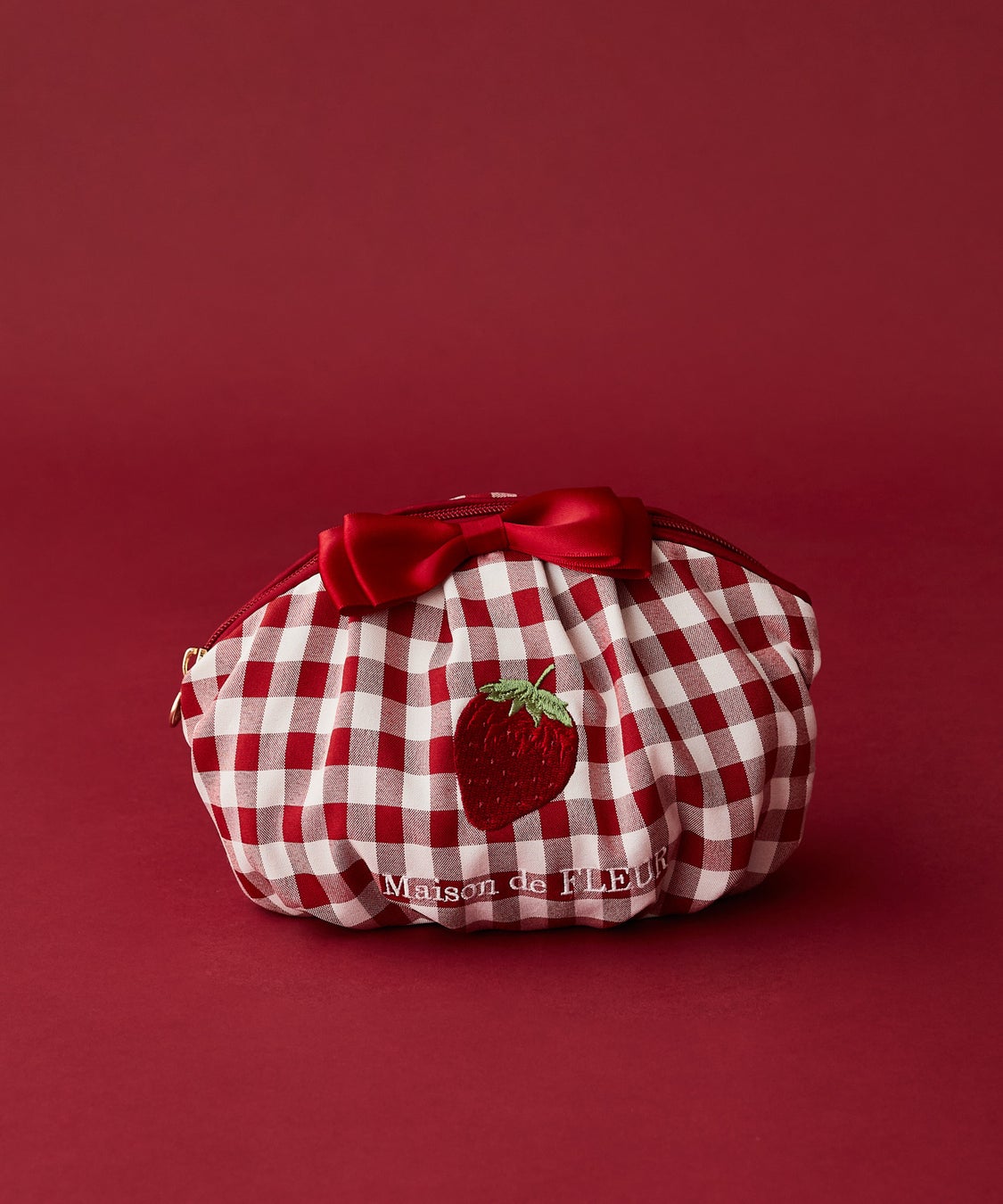 また、摘みたてのいちごをそのまま閉じ込めたような刺繍が魅力のバッグとポーチが新登場。ブランドらしいフリルとリボンをあしらい、ギンガムチェックとの組み合わせで甘く愛らしいデザインに仕上げました。