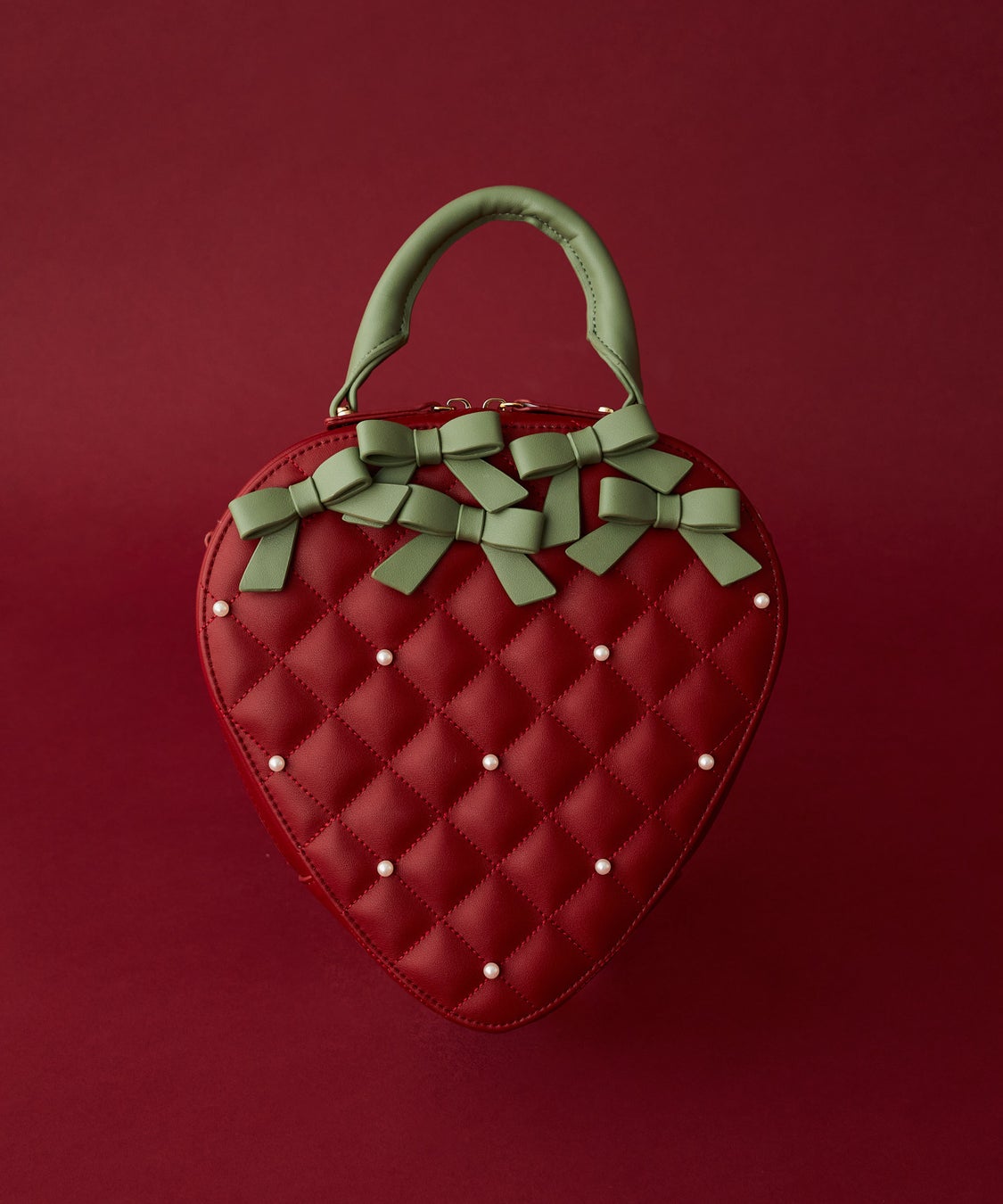 本シリーズで毎年好評の「イチゴショルダーバッグ」は、色味や素材をアップデート。立体感のあるキルティングに、種をイメージしたパールを散りばめて、へた部分をリボンで表現し、細部までこだわり抜いたデザインとなっています。