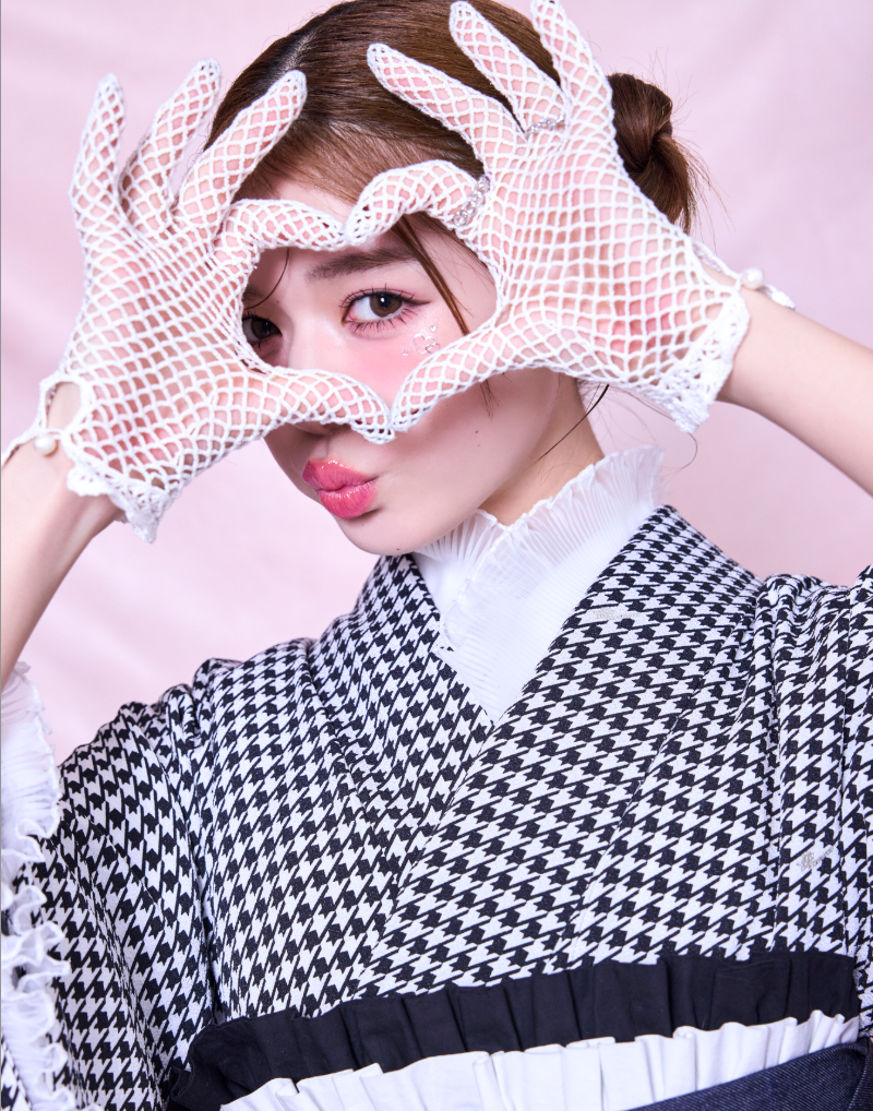 コーディネート次第でモードにもガーリーにもできるオリジナルの総千鳥格子柄振袖に