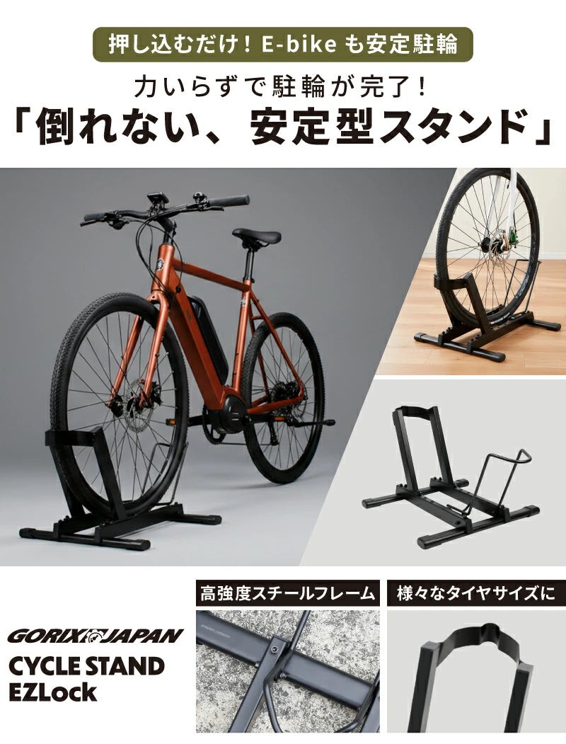 【新商品】【最大35kgのE-bikeや電動アシスト車にも対応!! 倒れない安定型スタンド!!】自転車パーツブランド「GORIX」から、自転車スタンド(EZLock)が新発売!!