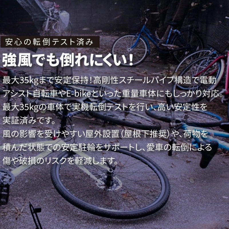 実機転倒テスト済みの高い安定性で、強風時の転倒リスクを大幅に軽減します。