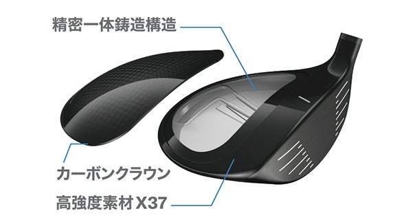 高い強度と粘り強さを持ち、より精密な設計が可能な高強度素材「X37」を採用しています。さらにカーボンクラウンとの組み合わせにより、驚きの飛距離と高弾道を生み出します。