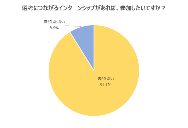 (1) 「選考につながるインターンシップがあれば、参加したい」と回答した学生が9割を超える
