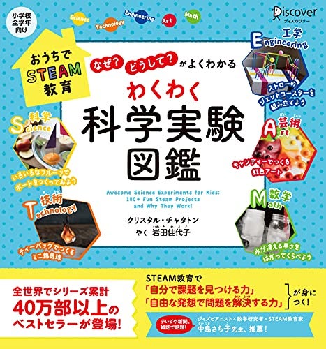 STEAM教育の5分野のそれぞれについて、幅広く実験を紹介しているので、実験選びに困りません。全ページオールカラーで100以上の実験を紹介しており、 しかもどれもがおうちにあるもので簡単にできます。今作同様、身近な実験を通して、楽しく学習することができます。
