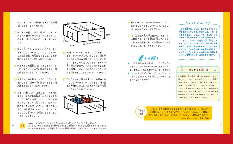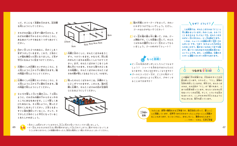 本書は、全世界でシリーズ累計40万部以上のベストセラーとなった実験図鑑シリーズの第2弾です。今回は工作編。工学の才能を引き出し、育むことに役立つ実験を紹介していきます。