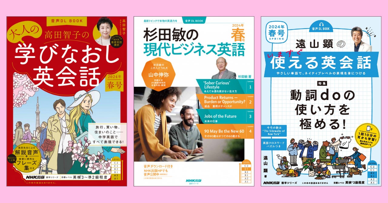 NHK出版人気英語ムック3誌『高田智子の 大人の学びなおし英会話』『杉田敏の 現代ビジネス英語』『遠山顕の いますぐ使える英会話』の2024年 春号が3月14日発売!通年分をまとめ買いで送料無料!