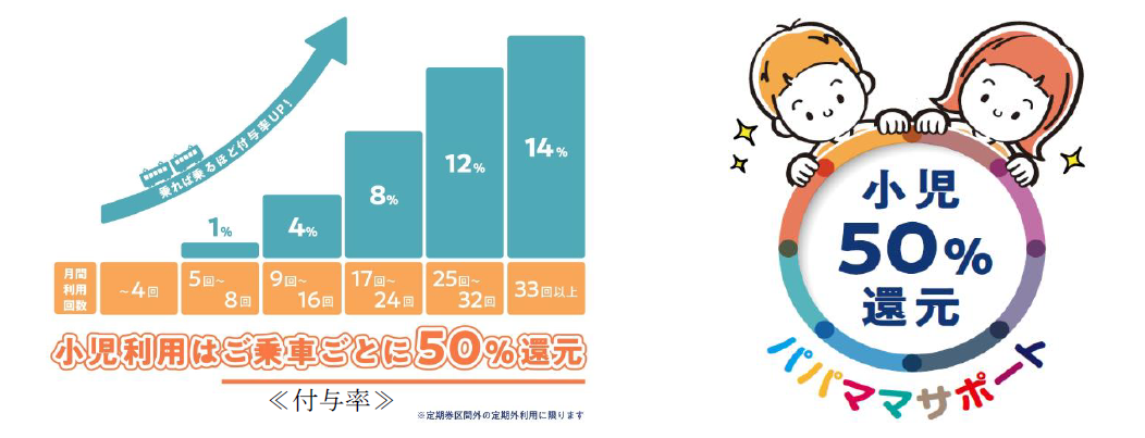 ~子育て世代のお出かけを応援するため、お子さまがご乗車する場合は乗車運賃の50%を還元します~