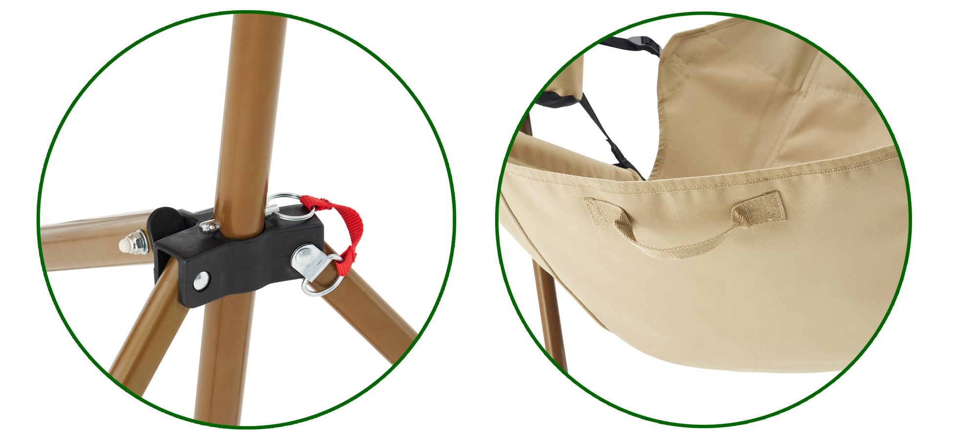 背もたれが調節できるベルト付きで、シーンに合わせてハンモックとチェアの2WAYに対応。ゆらゆらと心地よくゆれるので、リラックスタイムにおすすめ。