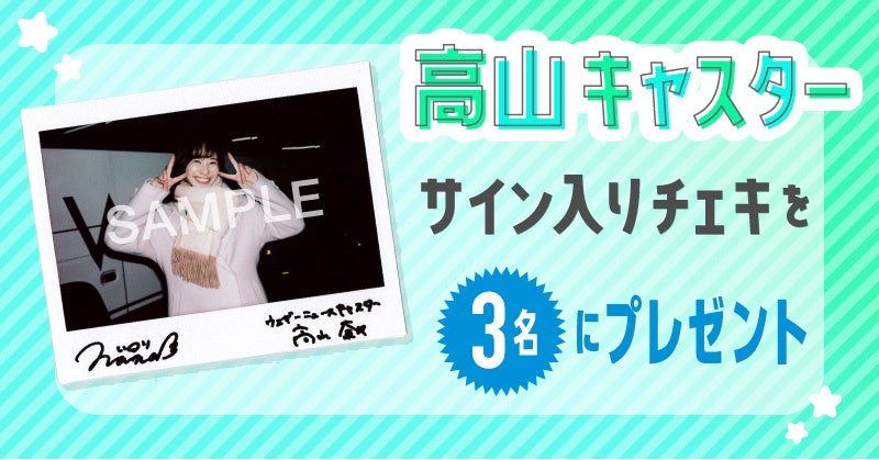 高山キャスターのサイン入りチェキが当たるプレゼントキャンペーンも実施!