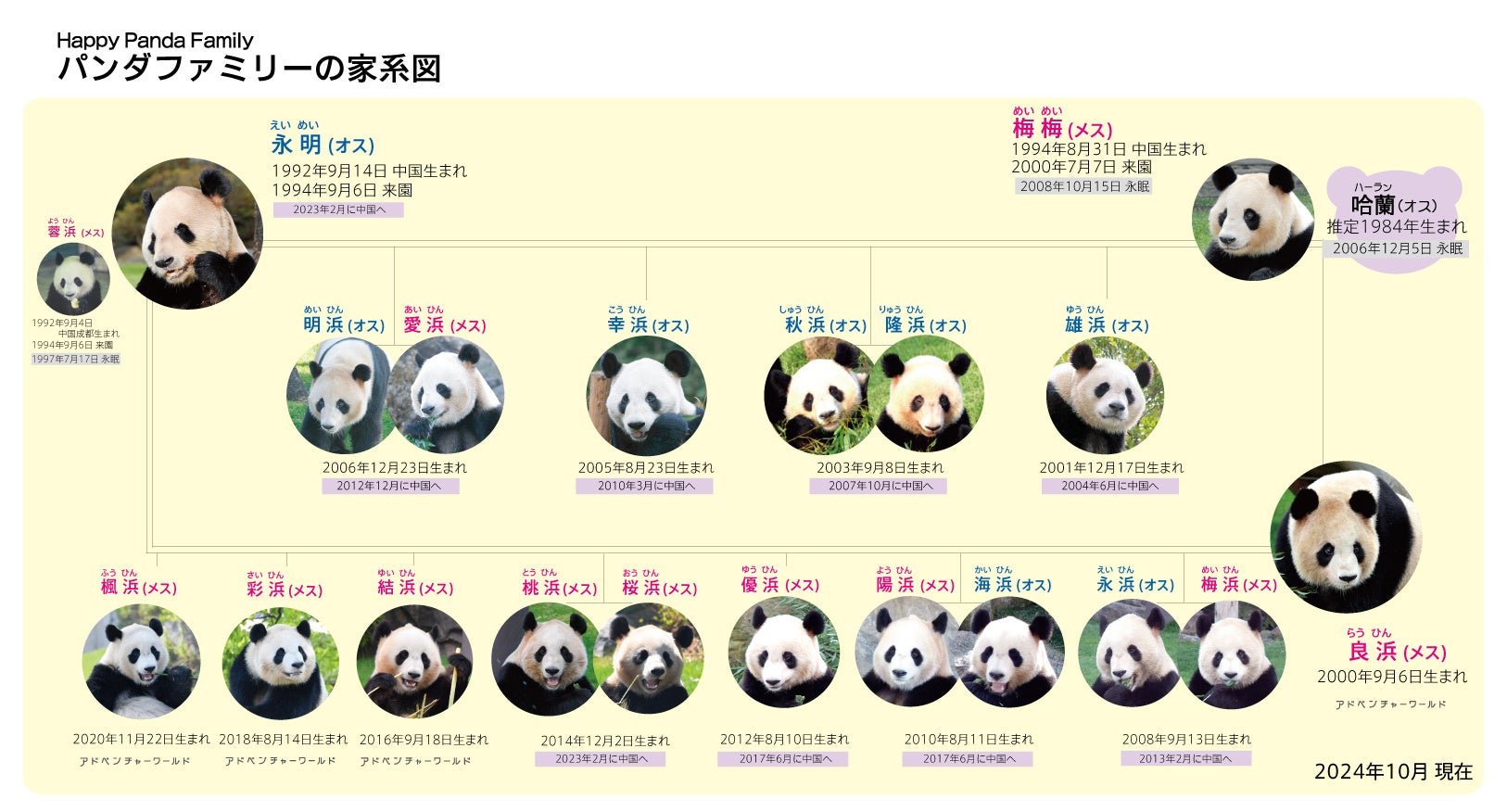 ルドでは17頭のパンダの育成に成功し、そのうち13頭が中国で新たなパートナーに出会い20頭以上の子孫が誕生、パンダファミリーの繁栄の輪が広がっています。