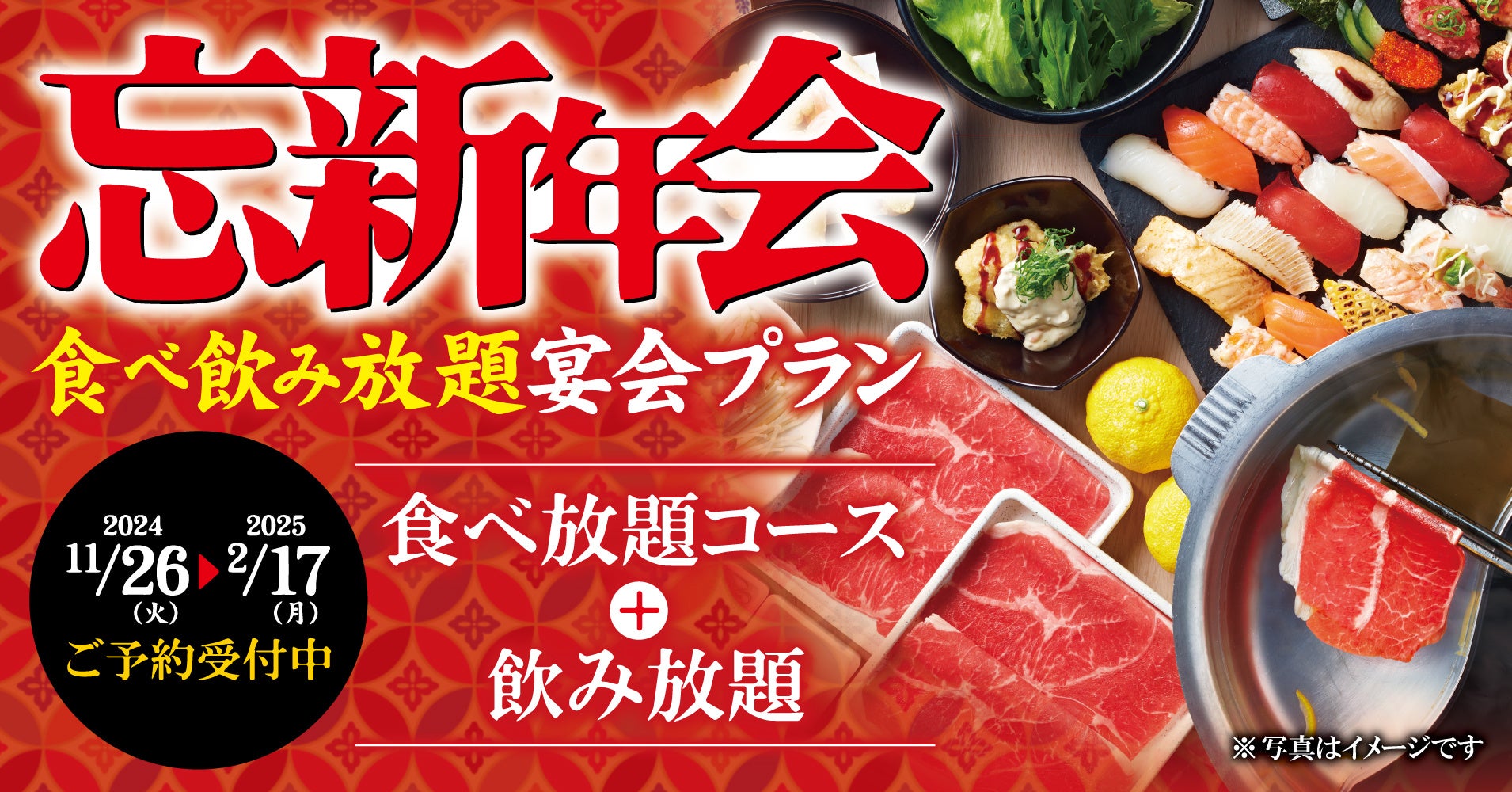 ■忘新年会食べ飲み放題宴会プランの詳細、および価格が異なる店舗はこちらをご覧ください→https://www.shabu-yuzuan.jp/lp/party/