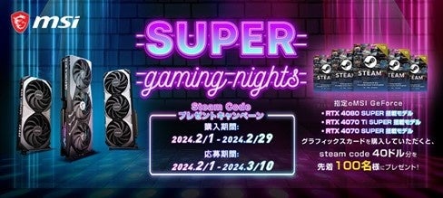 新型GPU搭載グラボ購入で、Steam Codeがもらえる! MSI、「SUPER gaming nights Steam Codeプレゼントキャンペーン」開催のお知らせ