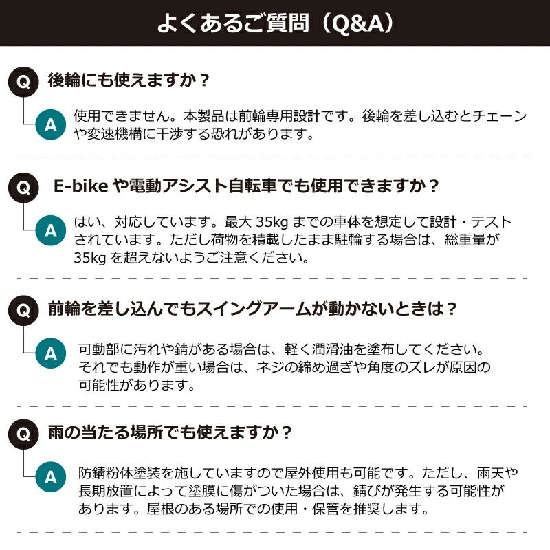・前輪専用。後輪に差し込まないこと(チェーン干渉の恐れあり)。