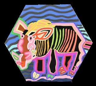 植物や動物・昆虫などの生命と対話するように描く。森や空などの自然も全身で感じ取り、力強い線と豊かな色彩を重ねていく。お出かけすること、人とおしゃべりすること、ご飯を食べに行くこと・・・。すべてが自分を表現する大切なものとしてつながっている。文化施設や公園、企業など、パブリックアートとして各地に作品がおさめられている。