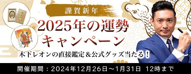 本キャンペーンでは、対象の鑑定を占った方に抽選で、木下レオンの直接鑑定or木下レオン公式グッズをプレゼント!2025年あなたに何が起こるのか…どう過ごしたらよいのか…あなたの一年が幸せ溢れるものになりますように、木下レオンが直接占います。