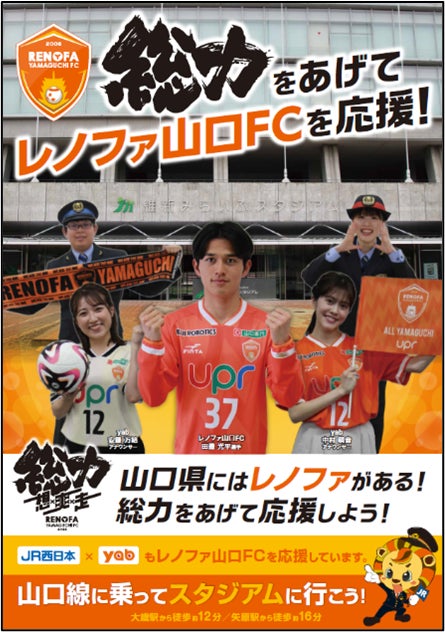 山口朝日放送(以下「yab」)と連携し、レノファ山口FCを応援するポスター・動画を作成しました。2024シーズンのレノファ山口FCのスローガン「総力」に合わせ、「総力をあげて応援!」をテーマにした作品となっています。