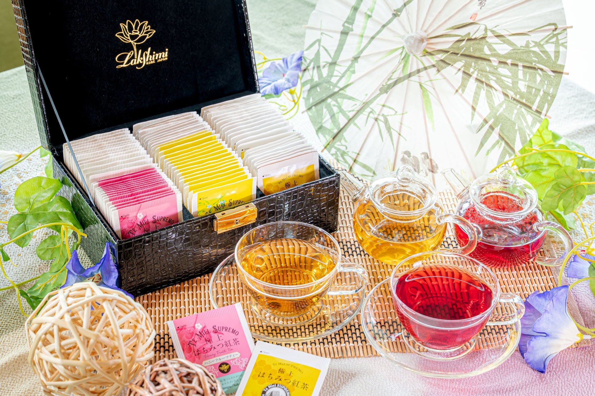 お食事に欠かせないドリンクは、和紅茶やコーヒーに加え、世界中の紅茶を扱う神戸の紅茶専門店「Lakshimi」の極上はちみつ紅茶5種類を心ゆくまでご堪能いただけます。