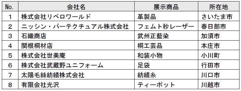 埼玉県ブースは西展示棟 西4ホール(4階)、産地ならではの職人の技や伝統技術をモダンにアレンジした逸品が集結する「伝統とModernの日本ブランドフェア」エリアに出展します。
