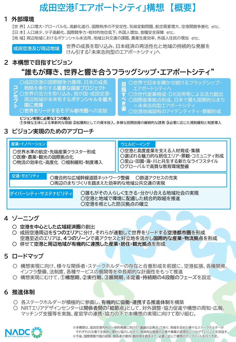 NRTエリアデザインセンターでは、「成田空港第2の開港プロジェクト」が本格化する中、空港と周辺地域が一体となって発展していくための未来への道筋として、成田空港「エアポートシティ」構想の策定を進めてまいりました。