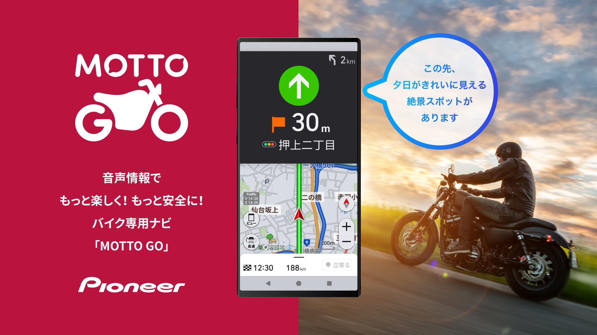 パイオニアは、高度なルートテクノロジーと音声技術を活用したバイク用音声ナビ「MOTTO GO(モットゴー)」のプレリリース版(利用無料、Androidデバイス向け)を、4月22日から6月末日(予定)までの期間限定で公開します。