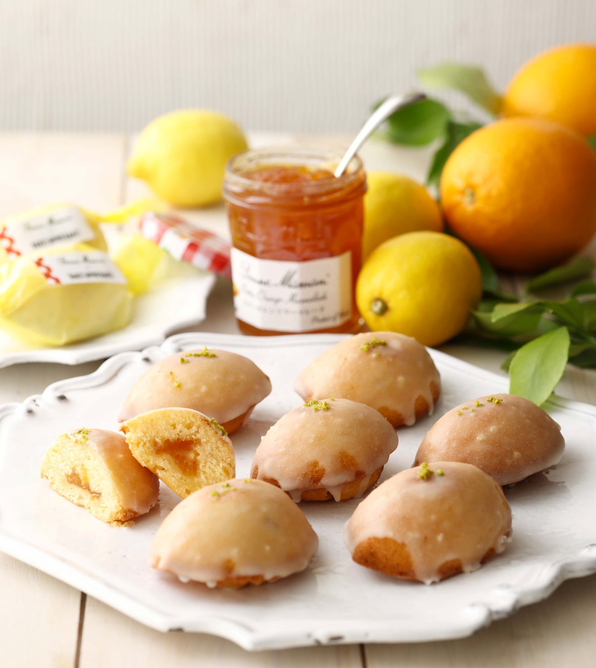 爽やかな風味のボンヌママンのビターオレンジマーマレードジャムを入れて焼き上げたしっとりとしたレモンケーキ。