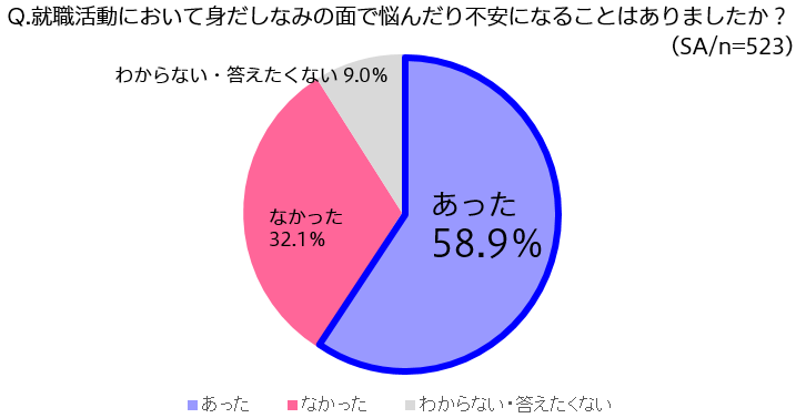 就活経験者の約6割が自身の身だしなみに、「悩み」や「不安」を感じていた!