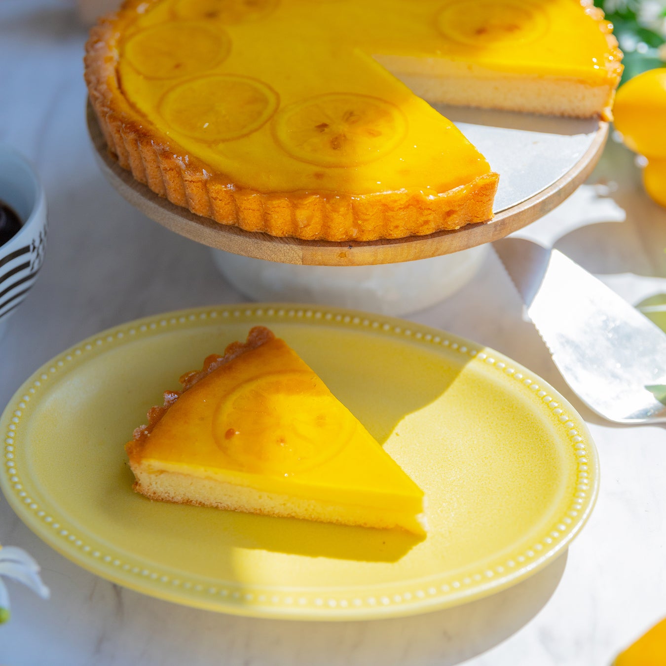 レモンをあわせたチーズクリームをタルト生地に流し込み、レモンスライスをのせたチーズケーキ風のタルト。