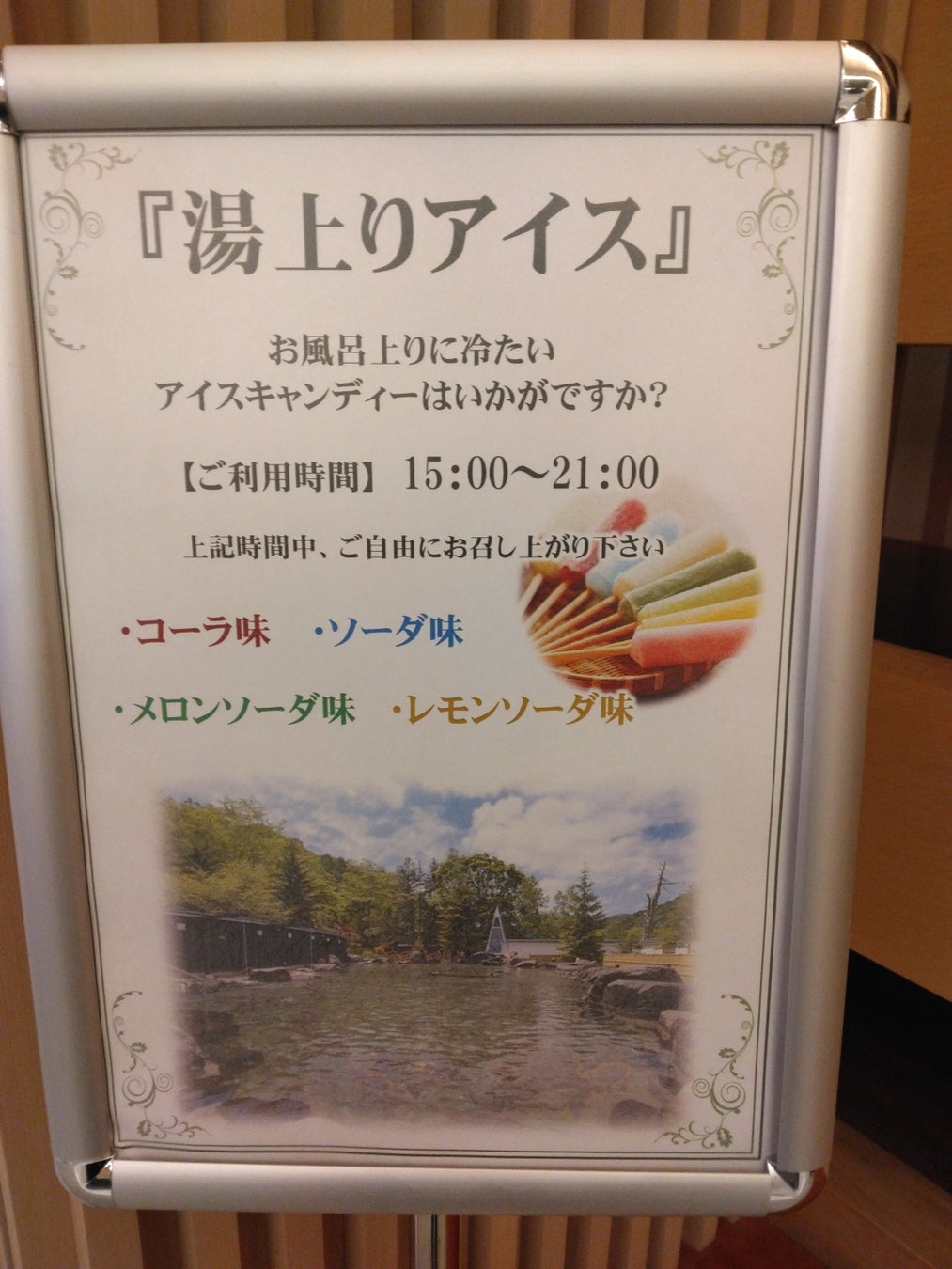 冷たいビールと合わせてゆったりとした気分を味わっていただければと思い、湯上りアイスはじめました