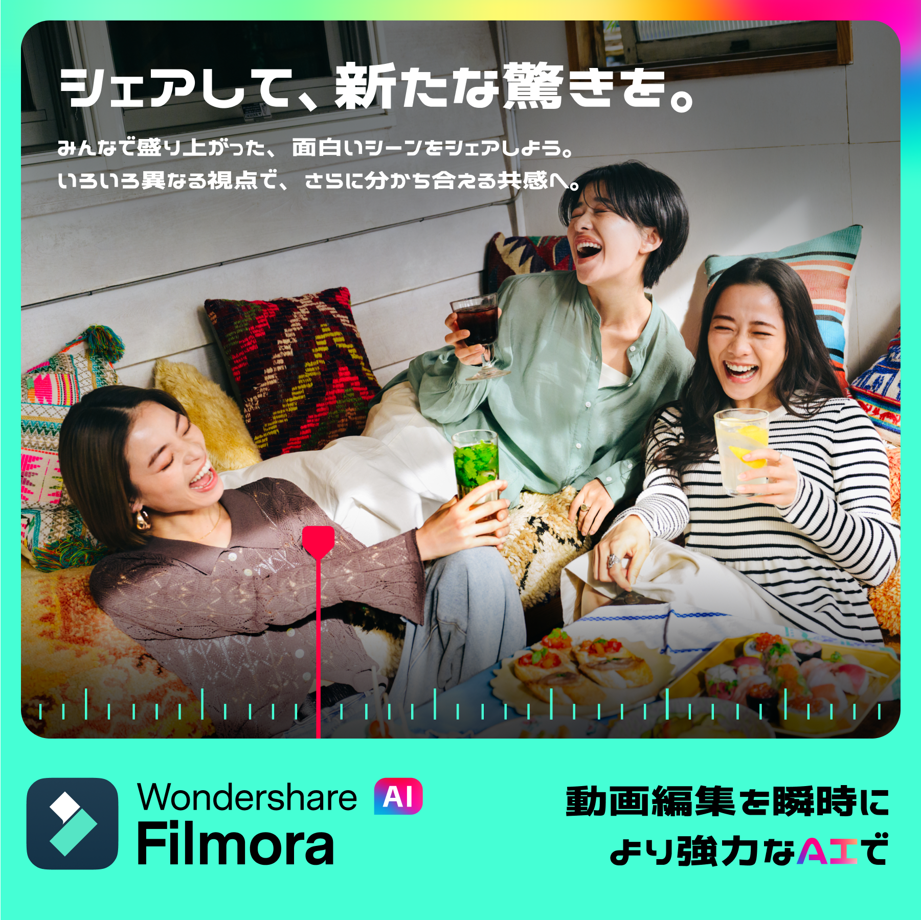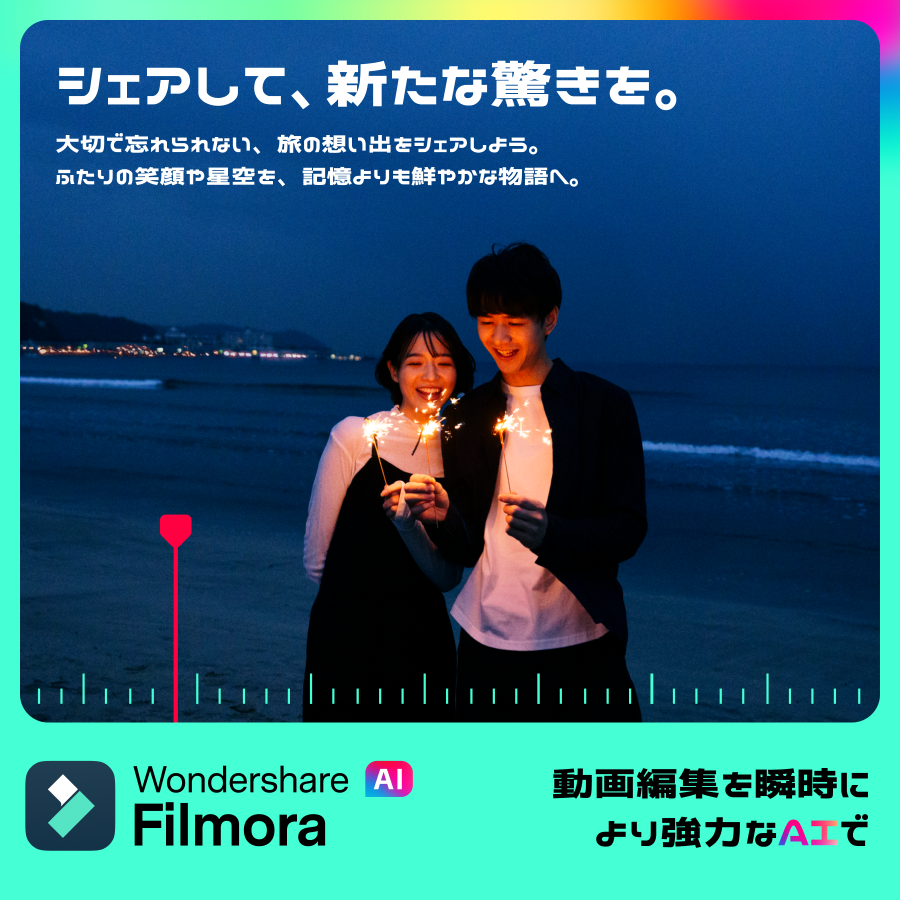 これらの意味のあるつながりを祝うために、Filmora は新しいキャンペーン「シェアして、新たな驚きを」を導入し、この時代に、ユーザーに自己発見を受け入れるよう促しています。この取り組みは、たくさんの人が動画を通して感情やストーリーを表現することを促し、日常の瞬間を特別な思い出に変えます。
