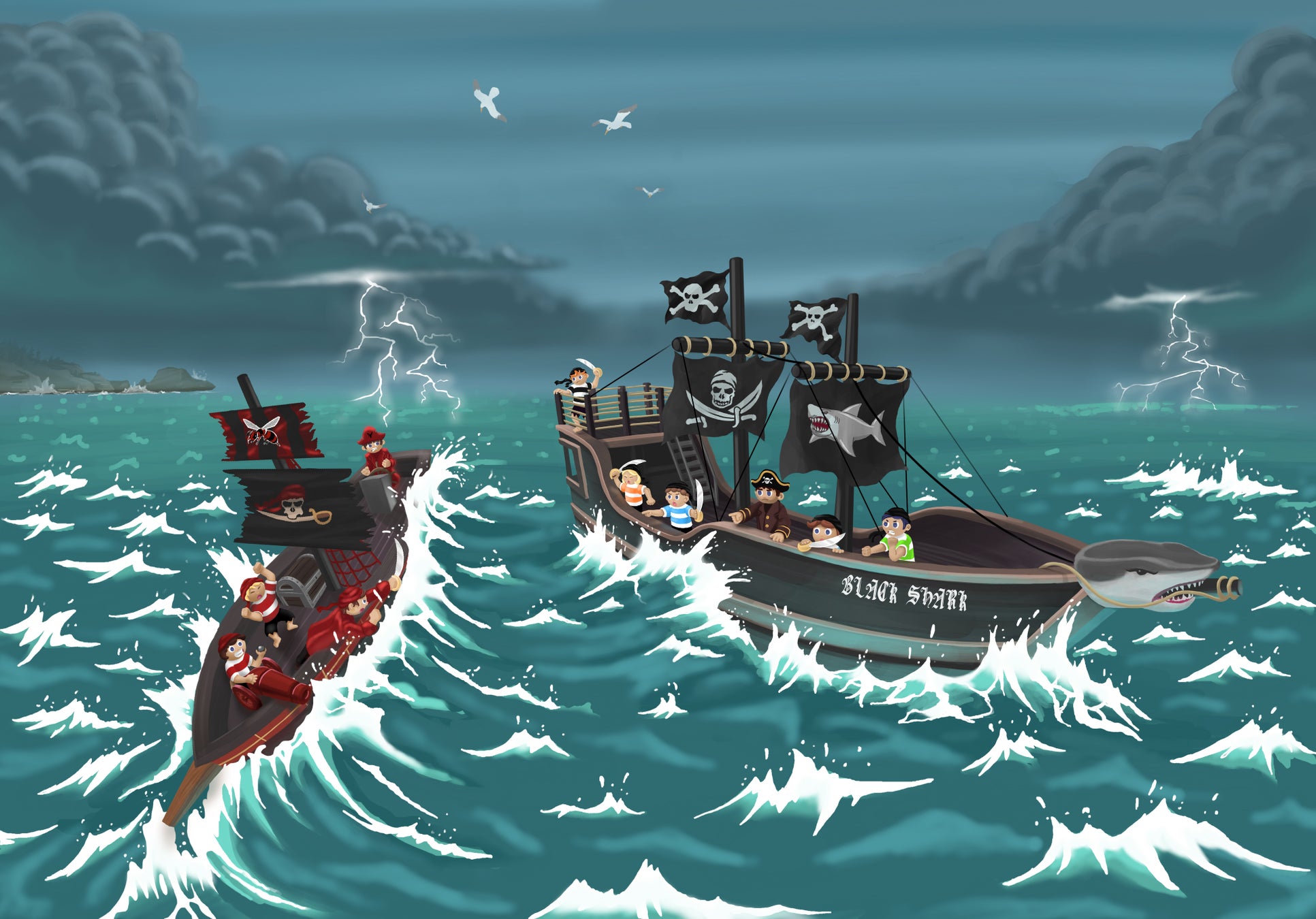シャーク船長が乗る「ブラックシャーク号」とホーネット副船長が乗る「レッドビー号」に乗ってゴッドサンタのいる場所を探してあまーいチョコやジュースのXmasプレゼントをもらおう。